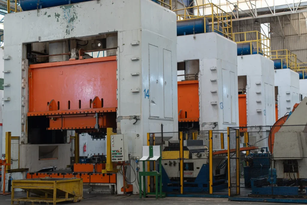 Linhas com prensas de alta tonelagem e alimentação automatizada asseguram repetibilidade e controle de processo. Desbobinadores e mesas dimensionadas para grandes formatos, com inspeção em linha quando requerido.